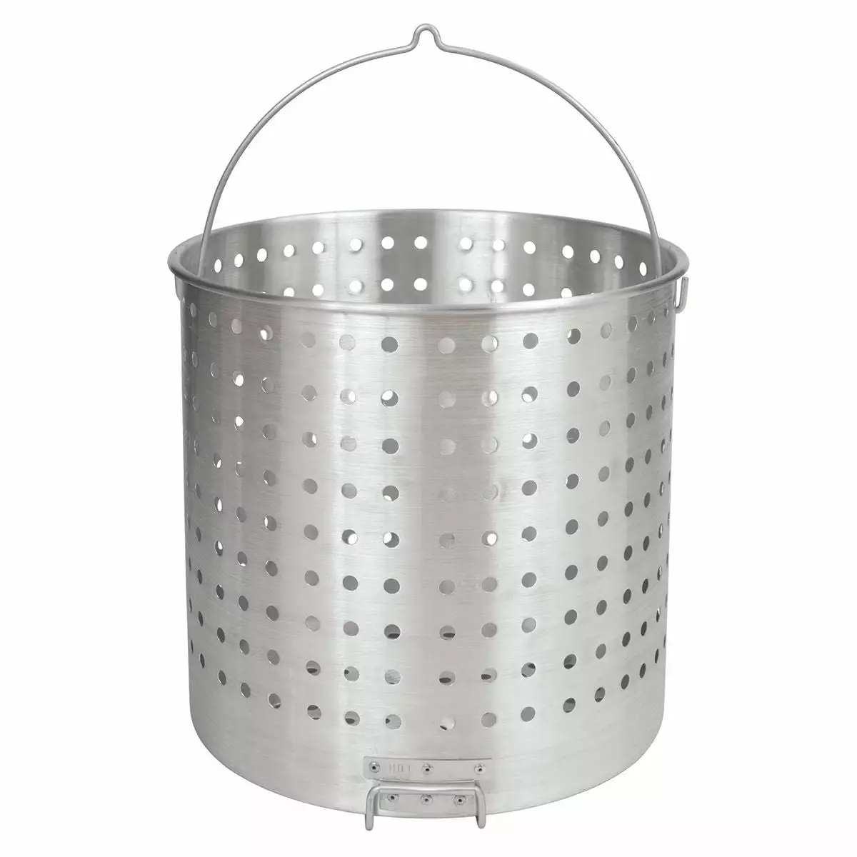 The Bayou Classic 100 Quart Aluminum Stock Pot Basket fits the Bayou Classic 100 Quart Aluminum Stock Pot. If you are buying this stock pot basket for another brand other than Bayou Classic, please make sure you measure your stock pot prior to purchasing. The 100 Quart Aluminum Stock Pot Basket is made of commercial grade aluminum. The stock pot basket dimensions are 18.75″d x 16.125″h.