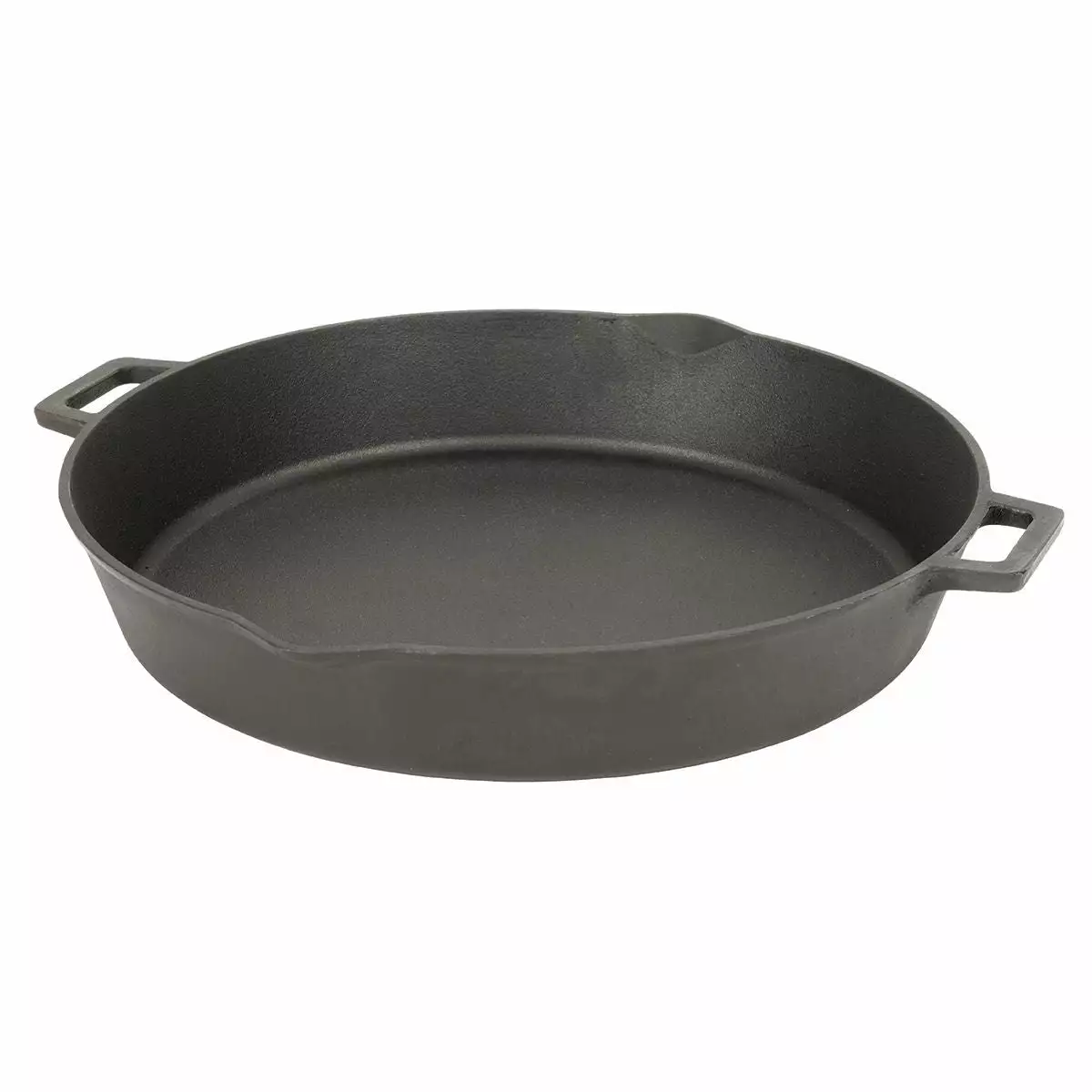 The Bayou Classic 16 Inch Cast Iron Skillet is the perfect sized cast iron skillet for bacon or a 6 hamburger patties. We like to use the 16 Inch Cast Iron Skillet when we have a small gathering to feed. This cast iron skillet is great for frying bacon, eggs and hamburgers.