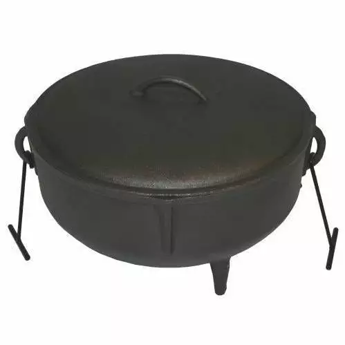 This Cajun Classic jambalaya pot is seasoned with a diameter of 17. 5 inches, height of 10 inches. This Cajun Classic jambalaya pot includes cast iron lid and pot hooks (to be used with the 10442A-5 GL610 5 gallon stand). Outside distance between legs – 11 1/4 inches. Cast iron cookware makes for superior heat retention and even heating of foods. Though Nonstick when seasoned, hand wash Cajun Classic cast iron with stiff brush and hot water. Heavy-Duty and durable, cast iron cookware is designed to last for years.
