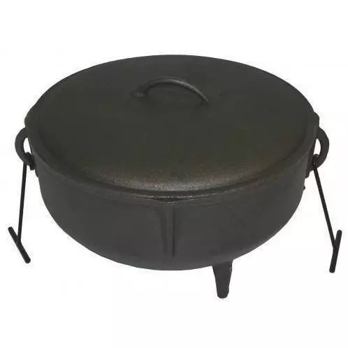 The Cajun Classic jambalaya pot holds 4 gallons and includes a cast iron lid. The Cajun Classic pot measures: 10 1/2 H x 13 Diameter