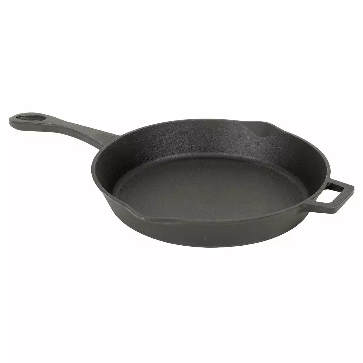 The Bayou Classic 12 Inch Cast Iron Skillet is the perfect sized cast iron skillet for a single family. We personally use the 12 Inch Cast Iron Skillet in our kitchen more than any other cast iron skillet sizes. This cast iron skillet is great for frying bacon, eggs and hamburgers. The Bayou Classic 12 Inch Cast Iron Skillet measures 12” D x 2” H. The Bayou Classic cast iron skillets do have an eye for hanging.