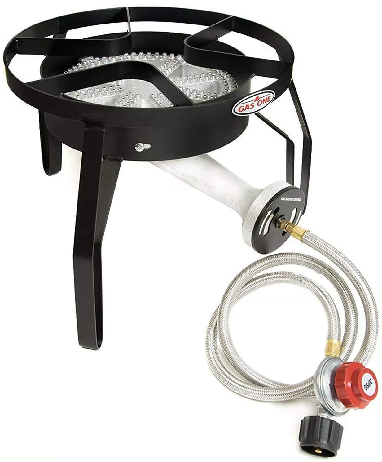 The Cajun Outdoor Cooking Kick A Banjo Burner sits on three sturdy metal legs. The Cajun Outdoor Cooking Kick A Banjo Burner features a BTU of 200,000 … little propane burner is a small powerhouse. The metal frame and cast-iron burner will compliment any outdoor setting, making your cooking experience a breeze. Whether it’s for tailgating, fishing, hunting, camping, or home-brewing, the Cajun Outdoor Cooking Kick A Banjo Burner makes the experience of being in the outdoors a convenient one.