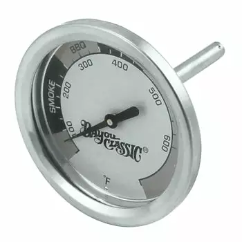 The Cypress Grill Thermometer is a stainless steel grill thermometer. The temperature range on the Cypress Grill Thermometer is 50-600°F and has a tempered glass face.