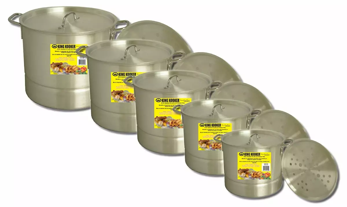 - Includes 20, 24, 32, 40 and 52 quart stock pots