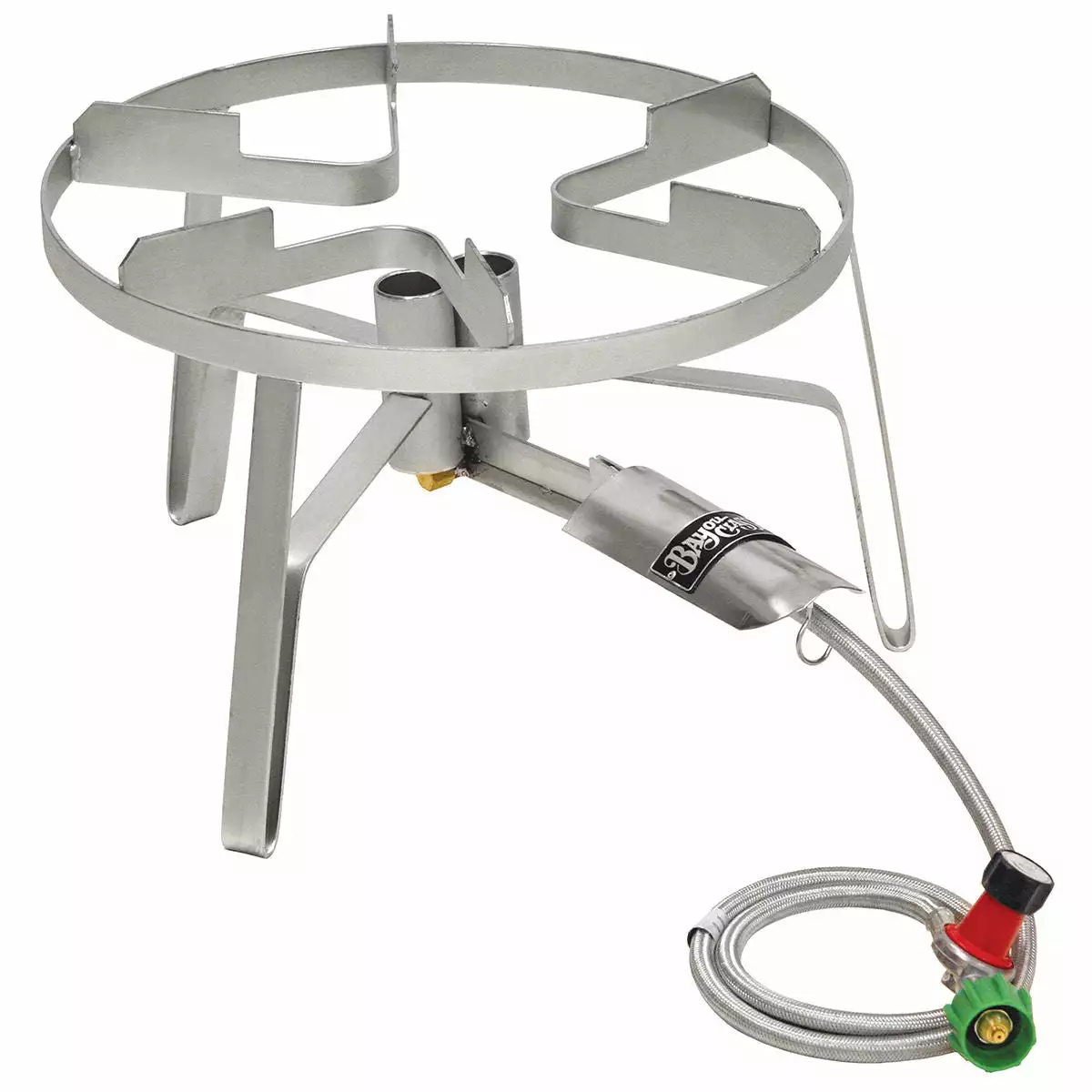For the last few years the Propane Double Jet Burner has been one of our more popular propane burners, however many of you have voiced that you wanted a stainless steel version. Our Stainless Steel Double Jet Burner has all the same features as the Propane Double Jet Burner with the added protection of stainless steel. The Stainless Steel Double Jet Burner will not rust like your propane burners made with black steel. The width of the cooking surface is 18 inches wide, making the Stainless Steel Double Jet Burner capable of supporting up to an 162 quart stock pot. This propane burner will also heat up large boiling pots twice as fast as single burners you find on the market. . . which makes it PERFECT for boiling crawfish. 120,000 BTU rating.